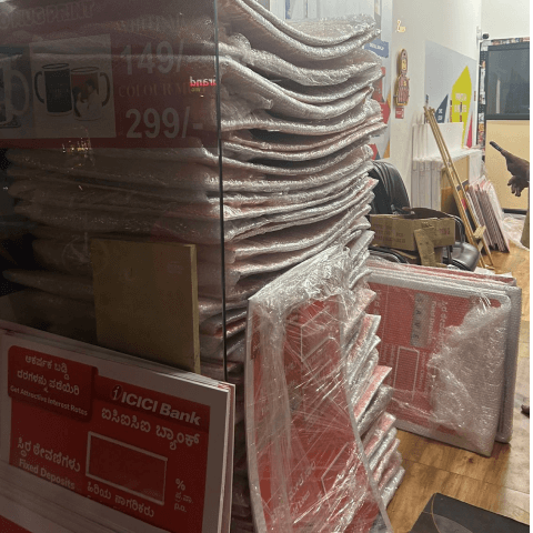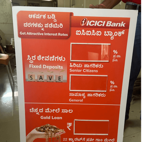 Cloth Banners, One-way vision stickers, Transparent stickers, Vinyl, Standees, Sunboards, Metal display stands, Hoardings around Bangalore, Hyderabad, Mumbai, Chennai & more.